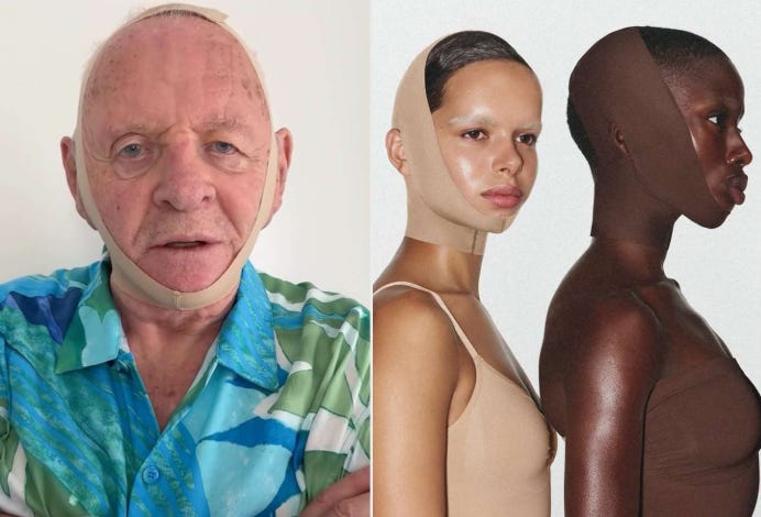 My god, this made me laugh. Anthony Hopkins in that bloody awful Skims face shapewear that everyone’s writing about.