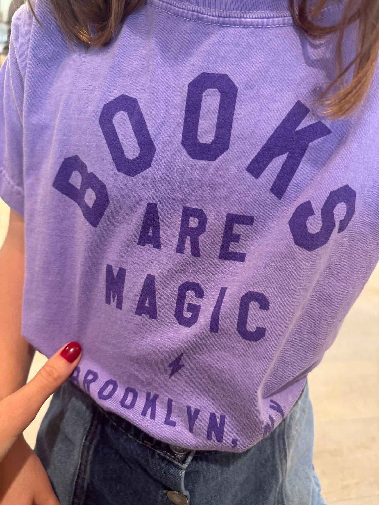 My daughter won’t take off this t-shirt that my sister bought her from a bookstore in Brooklyn Heights called Books Are Magic. I’m jealous.