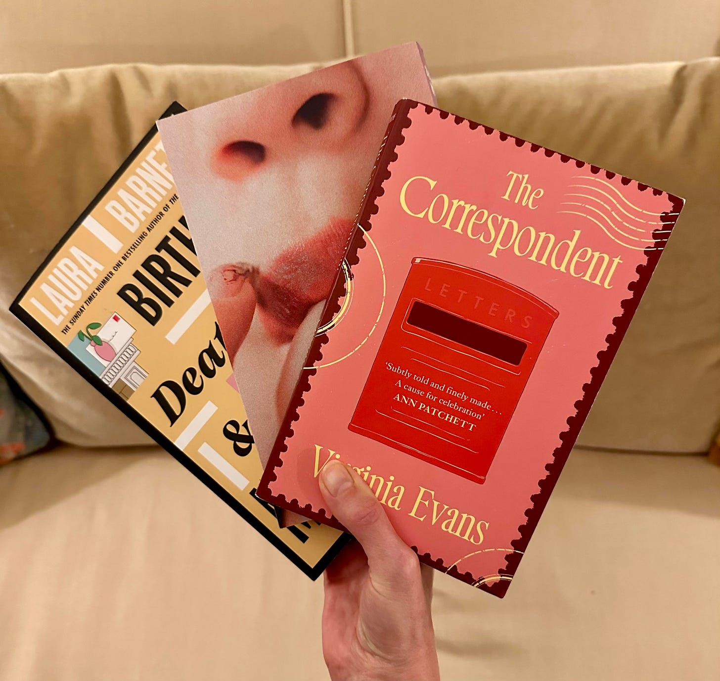 It is thanks to you, booksenbitters, that I picked it up the NYT’s ‘sleeper hit’ - overdue, chastened - as many of you cited it as your favourite book of the year in the Comment section of this letter. (Incidentally: there is nothing wrong with cosy, like the wildly popular cosy crime of Richard Osman. It’s just never been my personal taste.) I went straight up to my teetering piles of proofs (kept in an unused fire place in my bedroom) and winkled The Correspondent out of the book Jenga. I took it on holiday and almost as soon as I’d started, I was hooked. Nay, delighted. And then, soon, sobbing like I haven’t sobbed since I read Hamnet last summer. I was in hysterics, in fact, my husband rubbing my back as I explained the plot, before saying, after about 5 minutes, confusedly, “so this isn’t real life?” He was slightly less concerned to discover I was this undone over a novel.